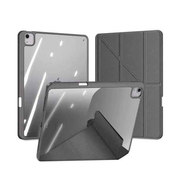 قاب پشتی شفاف کیف DuxDucis MAGI قابلیت جدا شدن از درب جلویی را دارد. این ویژگی باعث میشود بتوانید از آن به عنوان گارد محافظ مستقل استفاده کنید؛ مخصوصاً زمانی که میخواهید آیپد سبکتر باشد یا در حالت افقی با آن بازی کنید.