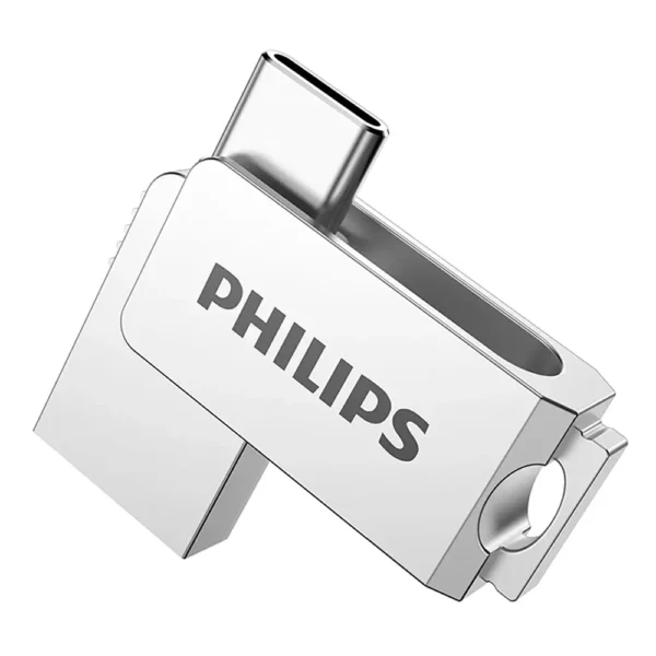 یک سمت فلش مموری 128 گیگابایت فیلیپس مدل FM30UC0128S مجهز به USB Type-C برای اتصال مستقیم به گوشی‌ها، تبلت‌ها و لپ‌تاپ‌های جدید است، و سمت دیگر آن دارای USB Type-A برای استفاده در رایانه‌ها و دستگاه‌های قدیمی‌تر. این طراحی باعث می‌شود بدون نیاز به مبدل، بتوانید فایل‌های خود را در هر شرایطی جابه‌جا کنید.